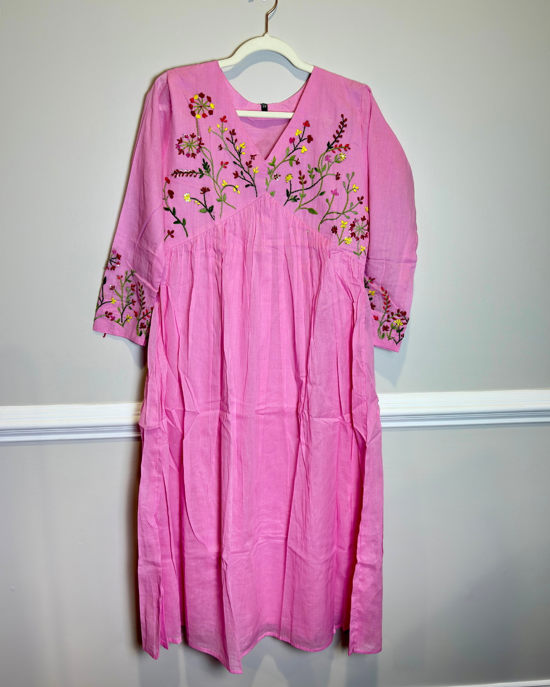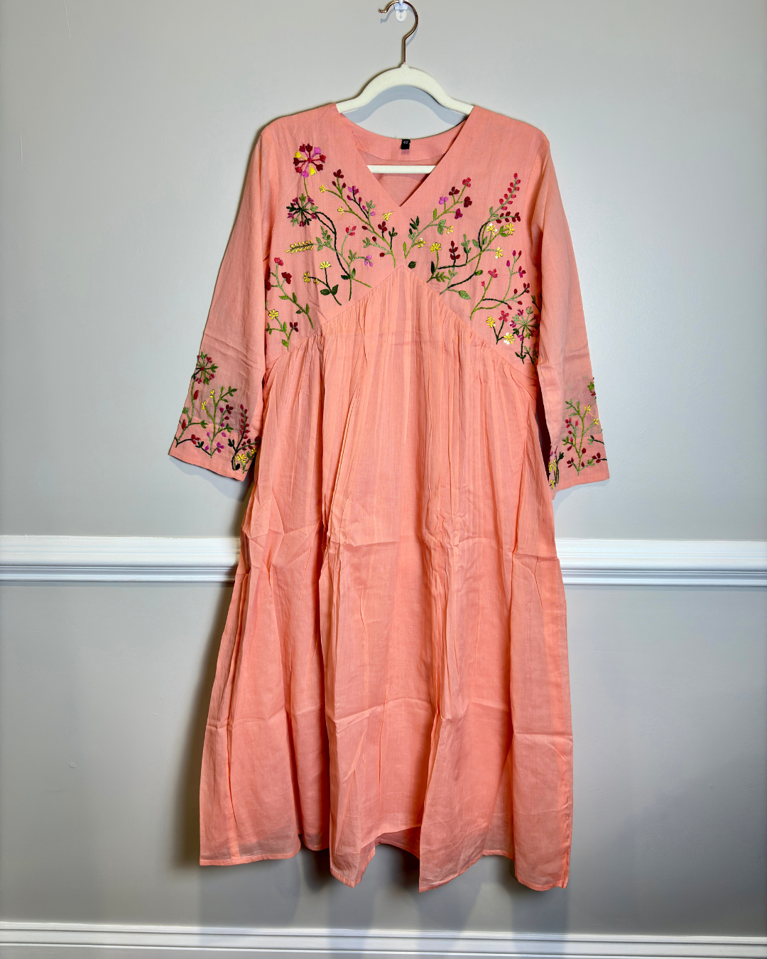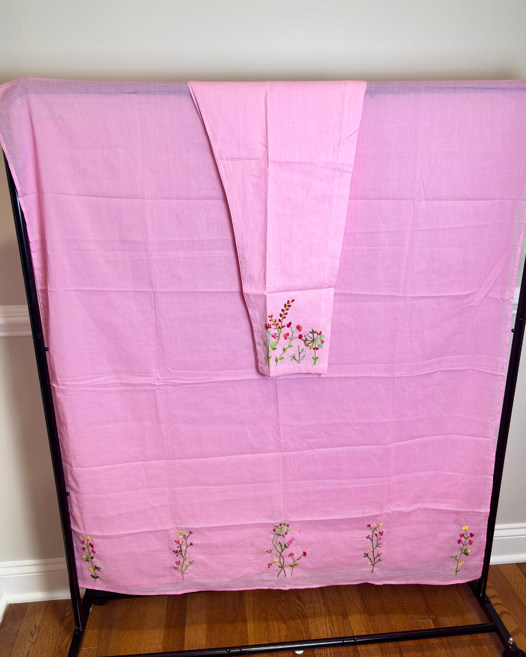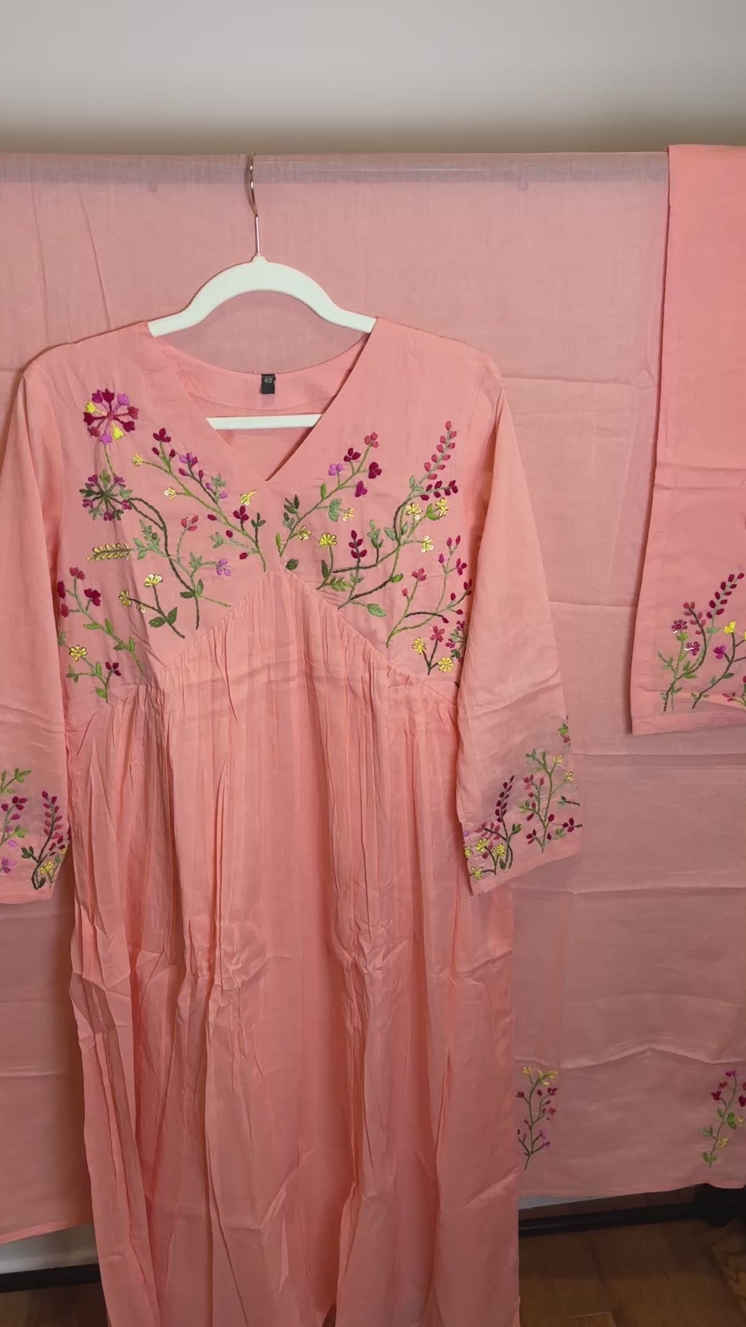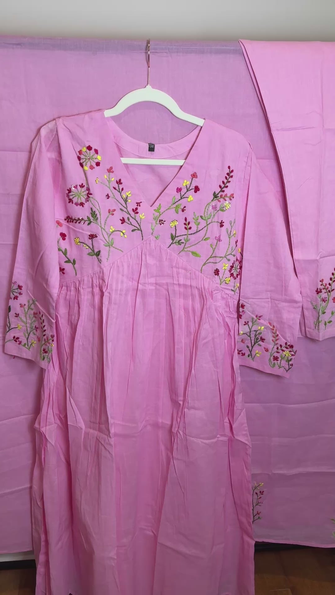 Work: Hand-Embroidered Floral Design on Top Yoke and sleeves, Pant and Dupatta