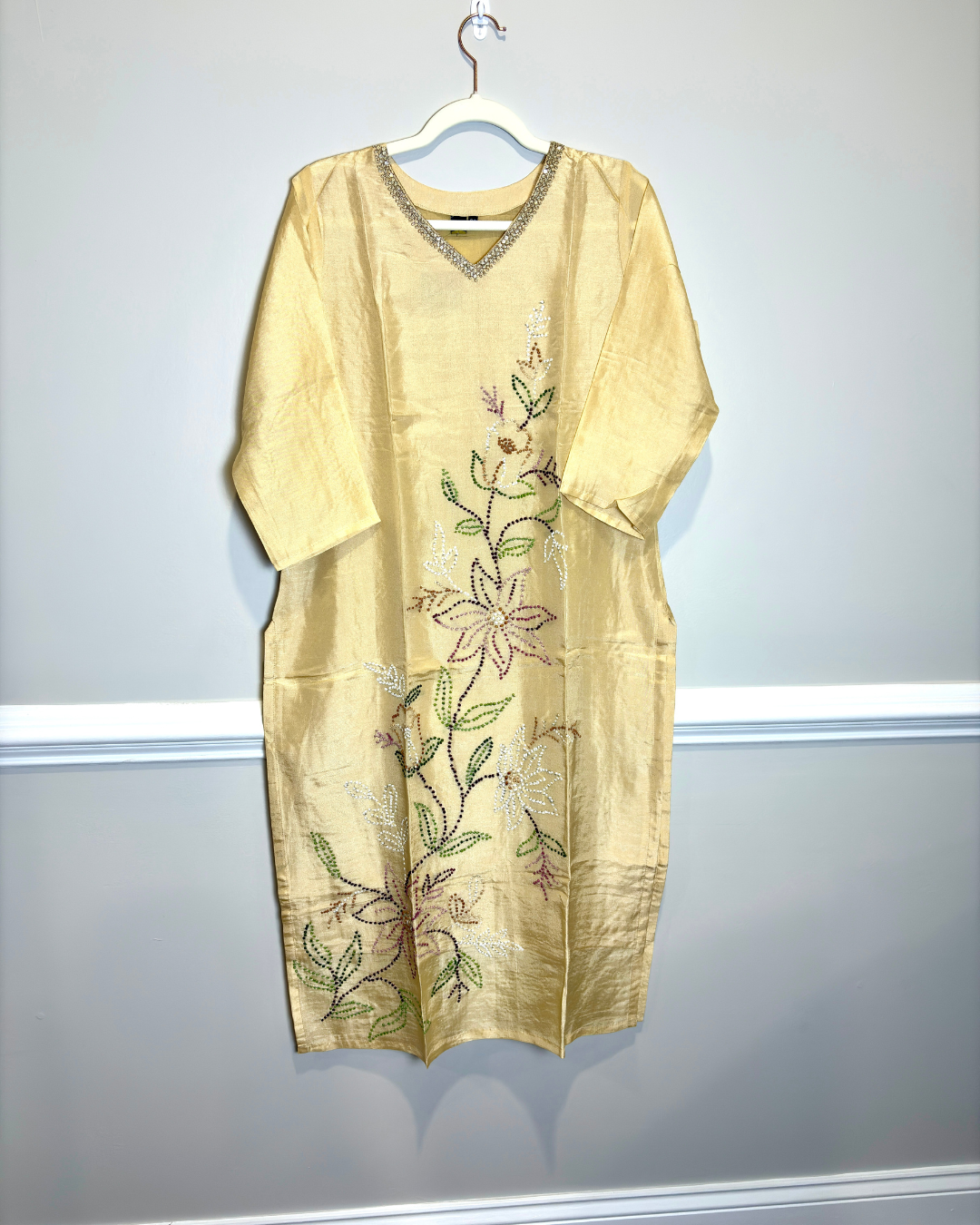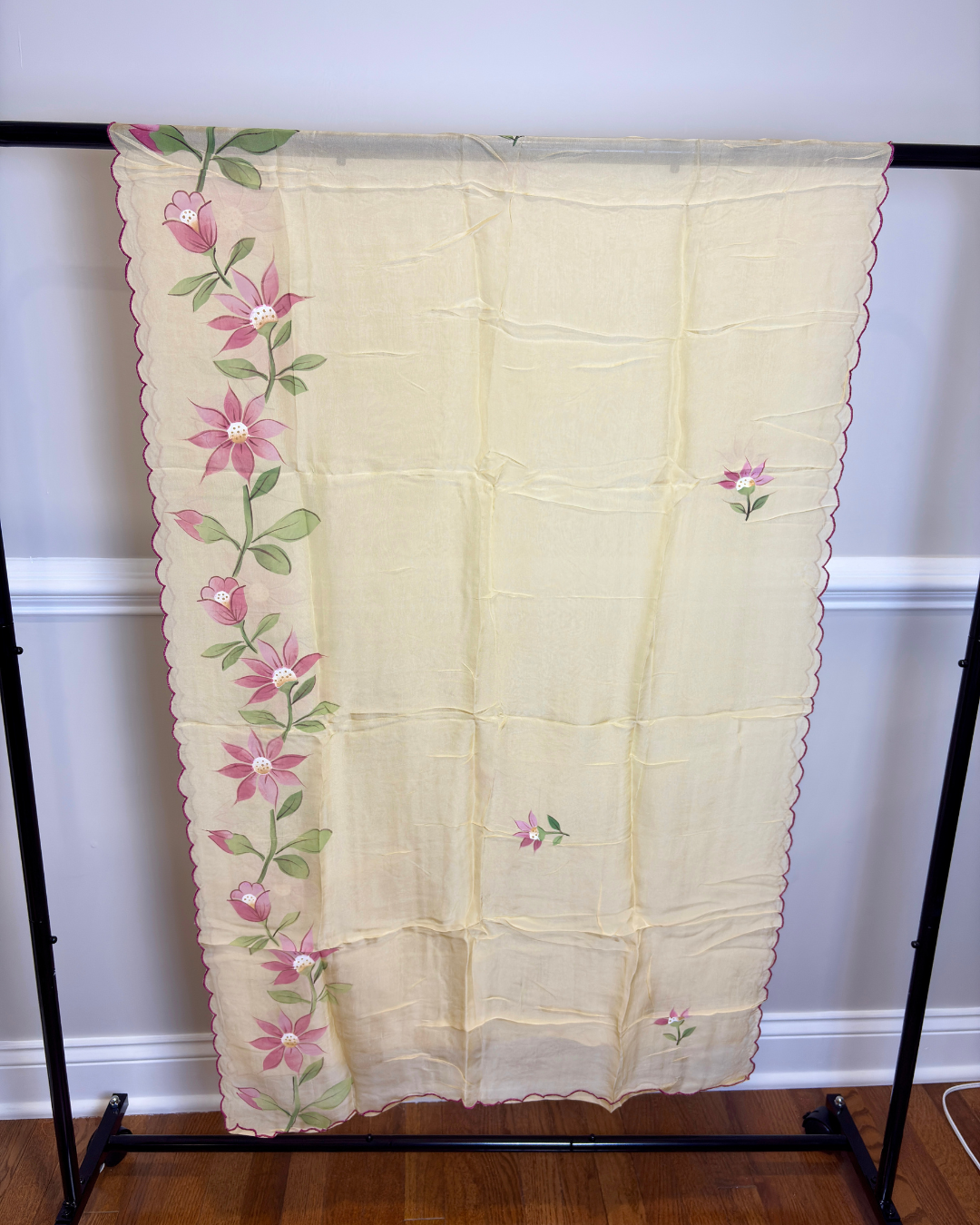 Work: Intricate hand-work and French Knot hand embroidery design on top andHand Painted Dupatta with Scallop Work.