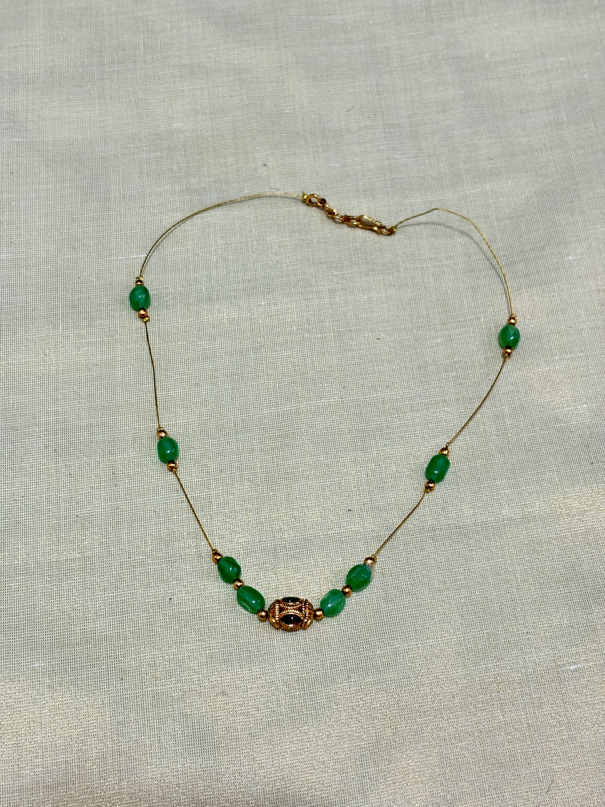 Invisible Green and Golden Beads Necklace