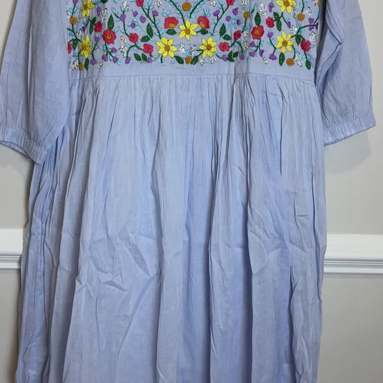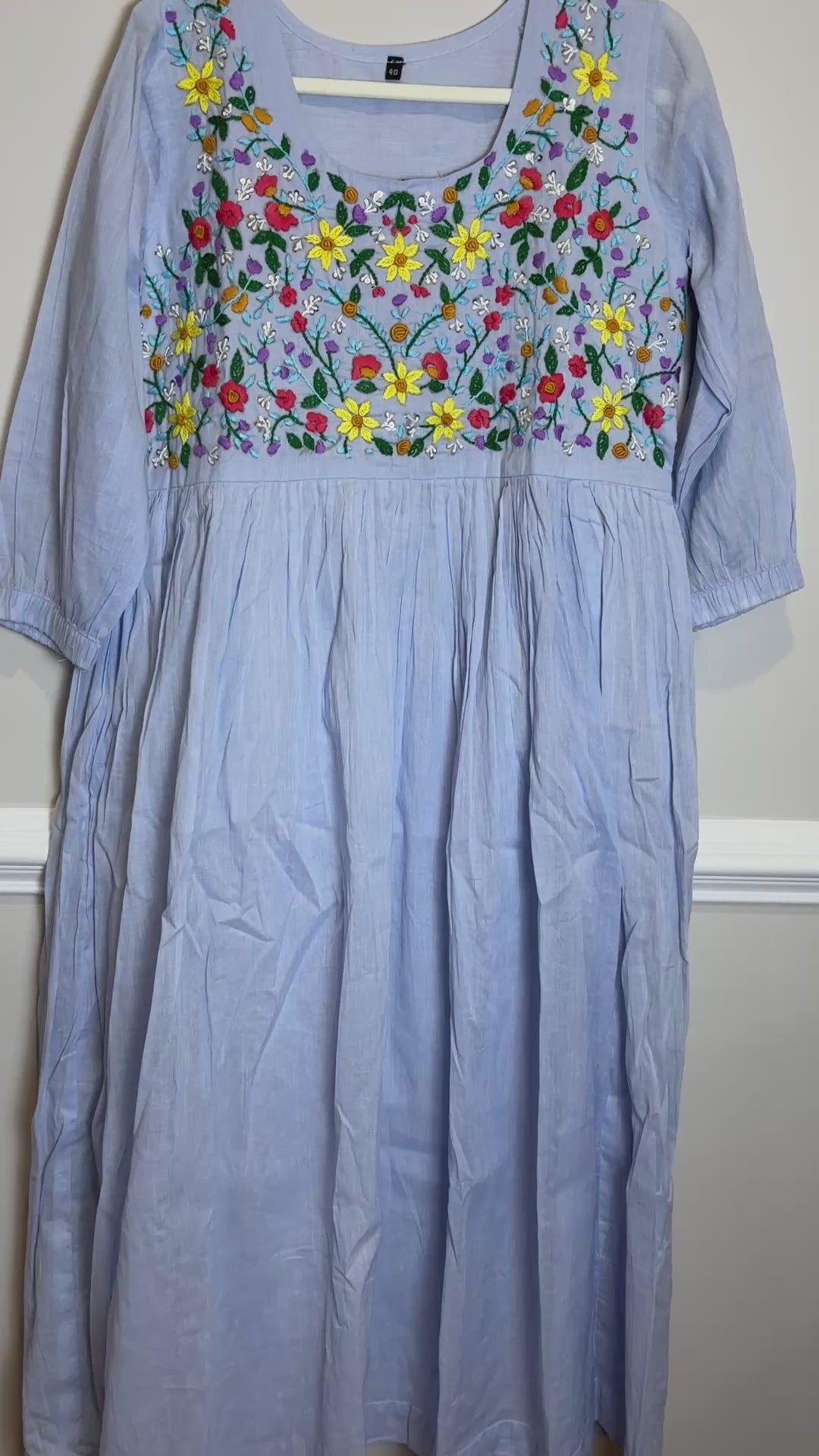Light Blue Flared Dress/Kurta with Hand-Embroidered Floral Yoke