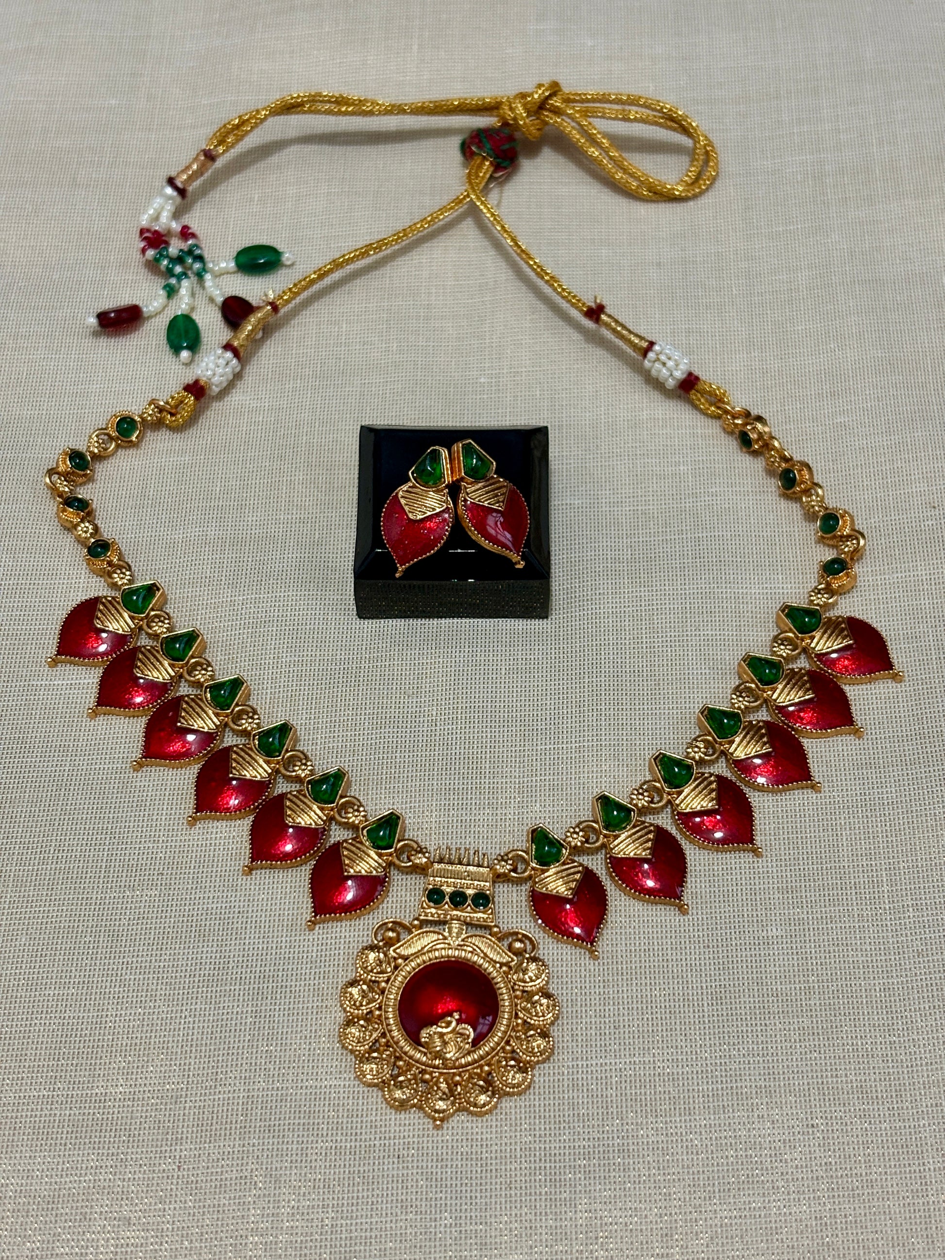 Elegant Palakka necklace with a statement pendant, a timeless piece of Indian jewelry perfect for temple wear, weddings, festivals, or gifting. Handcrafted for a bold yet traditional look.